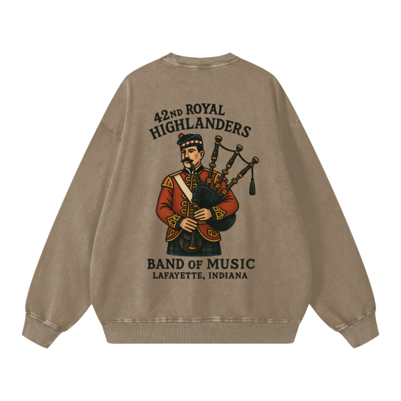 Step into history with the Highlanders Crewneck, honoring the 42nd Royal Highlanders Band of Music—America’s premier 18th-century pipe, fife, and drum ensemble. Founded in 1975 in Lafayette, Indiana, the 42nd brings the legacy of the Scottish Highlands to life, portraying the 42nd Regiment of Foot during the American Revolution with authentic music, dress, and military precision.