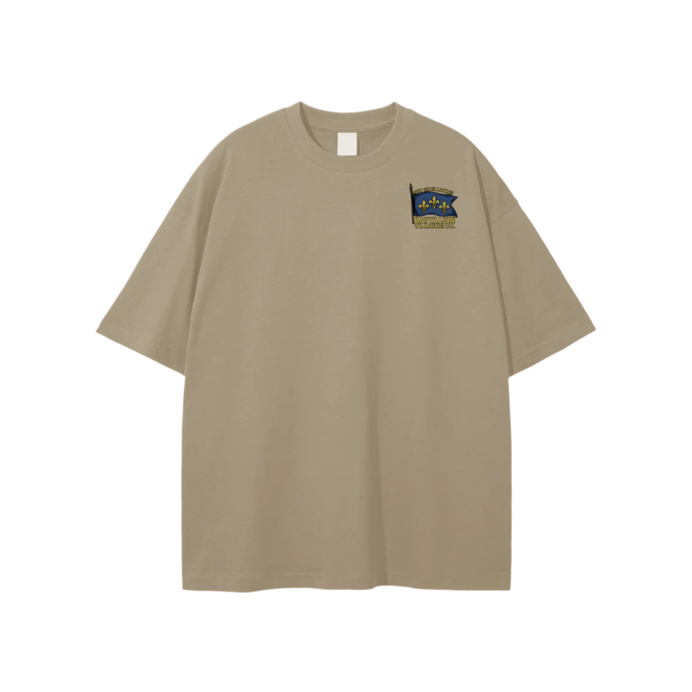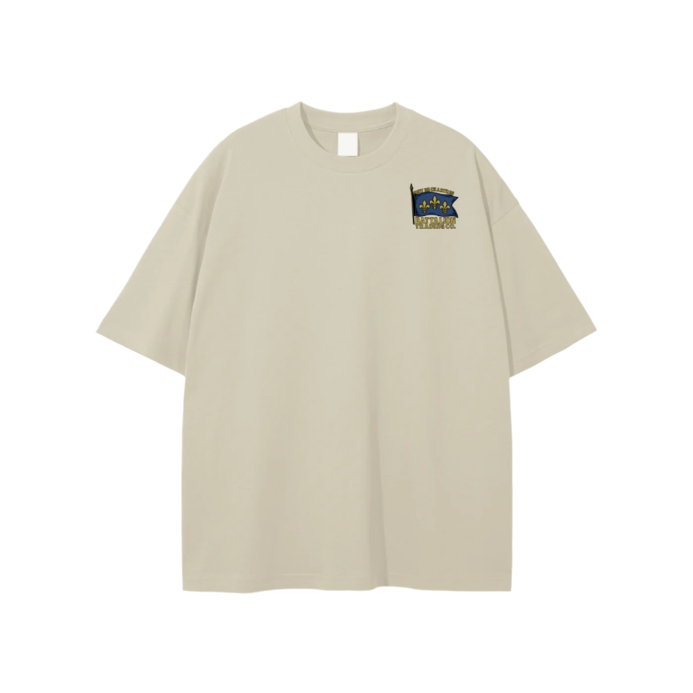 Made from 100% cotton with a lightweight 6.8 oz fabric, this unisex tee offers a relaxed, loose fit with a drop shoulder and soft feel—perfect for spring and summer wear. The oversized 40×52cm print makes a striking historical statement without sacrificing comfort or breathability.